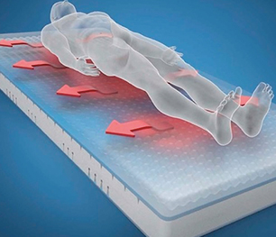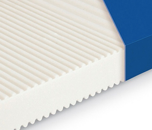 El colchón está formado por un núcleo de espuma monolítico. Gracias al perfil de la parte superior del colchón en el área de la cadera del paciente, se produce una mejor circulación del aire y una mejor distribución de la presión entre la piel del paciente y la base, el colchón presenta recortes en la parte interior gracias a los cuales se optimiza la presión en el paciente durante su colocación en la cama.