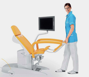 La silla de exploración ginecológica combina un diseño moderno con una gran funcionalidad.