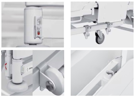 Cama mecánica, contiene ciertas funciones como posicionamiento de cama variable con ergoframe®, la operación mecánica fácil por mecanismo de manivela permite el ajuste de respaldo y muslo, el reposapiernas se puede ajustar a 5 posiciones usando la manija, la prevención efectiva de las úlceras por presión está garantizada por el exclusivo sistema ergoframe® que disminuye la presión en partes del paciente cuerpo que son de alto riesgo.