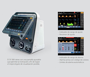 El SV300 es un ventilador de vanguardia con una configuración simple, fácil de manejar y de uso versátil. Trata a los pacientes pediátricos y adultos con todos los niveles de agilidad en cuidados intensivos e intermedios. Equipado con funciones que normalmente se encuentran en ventiladores de cuidado intensivo, el SV300 incorpora modos de ventilación extensivos, y las funciones únicas lo convierten en un ventilador de alto nivel, Medición de CO2 volumétrica, indicadores de destete, Terapia O2, Intelli Cycel.