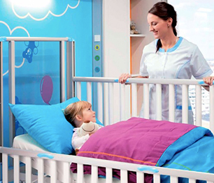 Una cama de última tecnología para pacientes en edad pre-escolar es segura y capaz de proporcionar al personal de enfermería un excelente acceso al paciente.